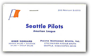 Pilots business card. This must have been printed some time in 1968, before the Pilots logo was created.